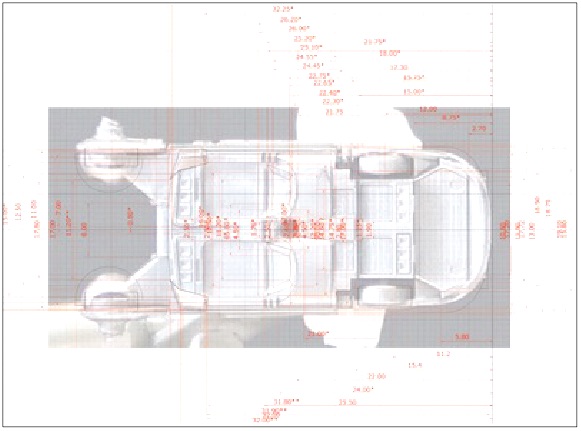 前回までにスピナー底部のドライバーの足下にあたる窓やインテーク周りの採寸と図面化を進めていましたが、何度も採寸をやり直し、ほぼこの部分の図面化を終えました。さらに車体底部の後方にかけての採寸を再確認し最終寸法を図面化する作業を行っています。とにかくミニチュアが1/100と小さいため正確な寸法が取りずらく、すでに採寸していた寸法が違っている箇所が多く調整しながらの作業となっています。